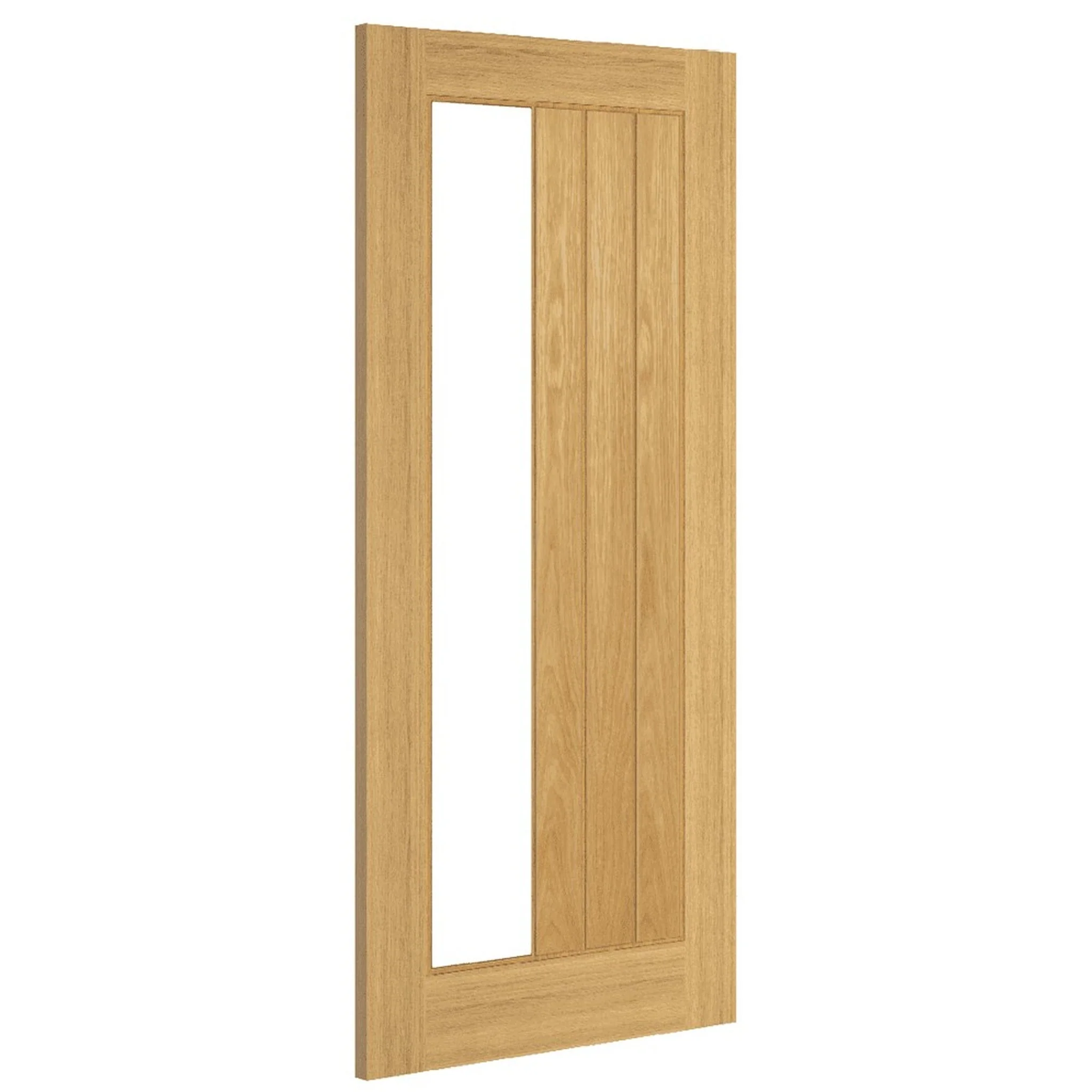 Manufactured to the highest quality using FSC-certified North American White oak veneer that has been crown cut to show the natural grain, this door has a stunning satin finish and a single column of clear fire-rated toughened glass that lets light flood into your home.