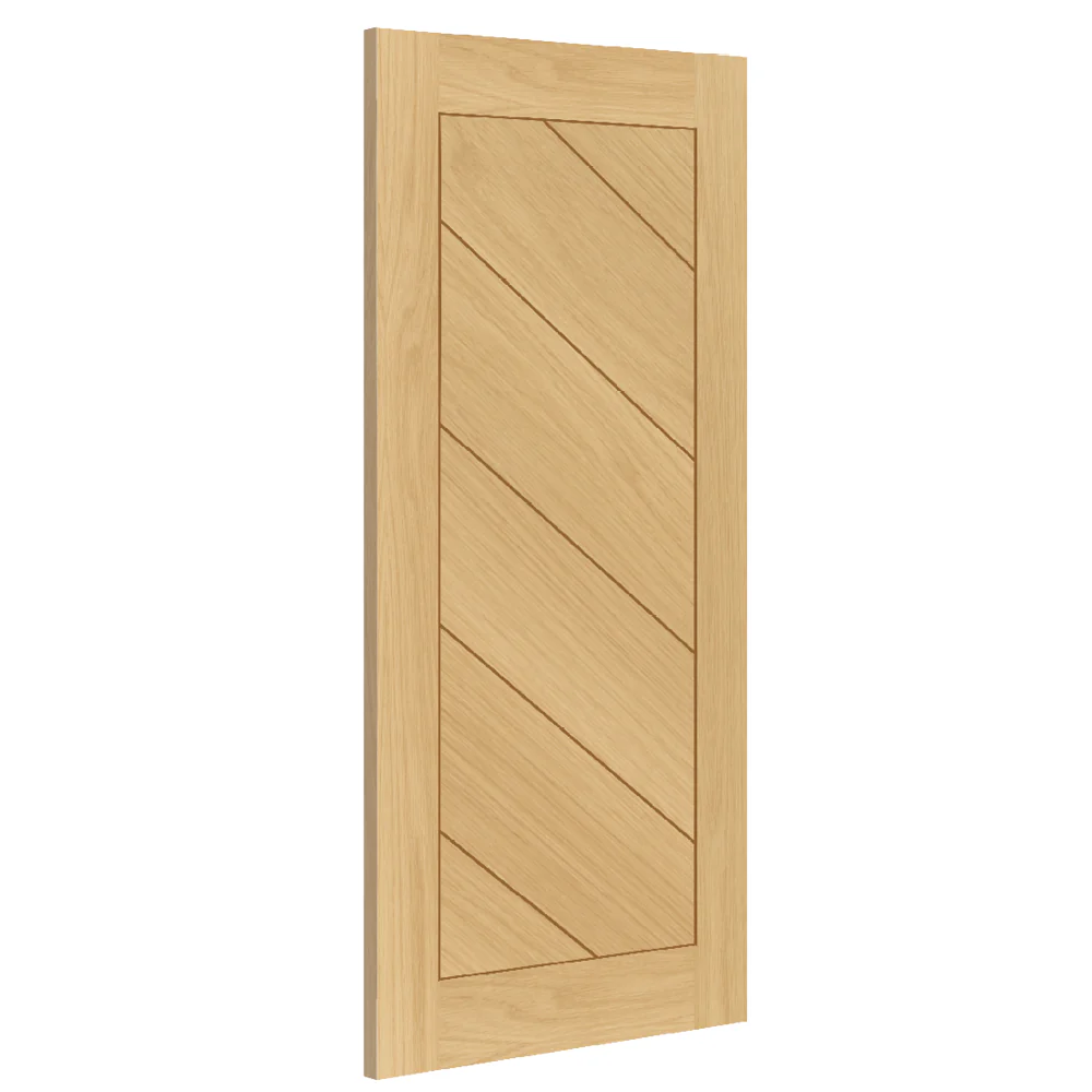 The Torino Prefinished Oak Fire Door is a sought-after design constructed with real oak veneer. This modern flush door has a sleek unique style that would suit a modern contemporary home. The diagonal inlay design gives a sharp modern feel, coupled with the real oak veneer that gives it an elegant edge.